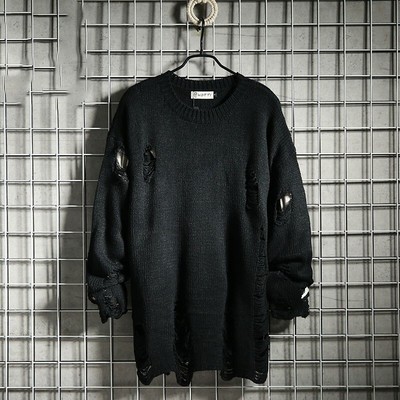 Men S Ripped Hole Tops Pullover Knitting Sweater Vintage Style Jumper Japanese Ebay