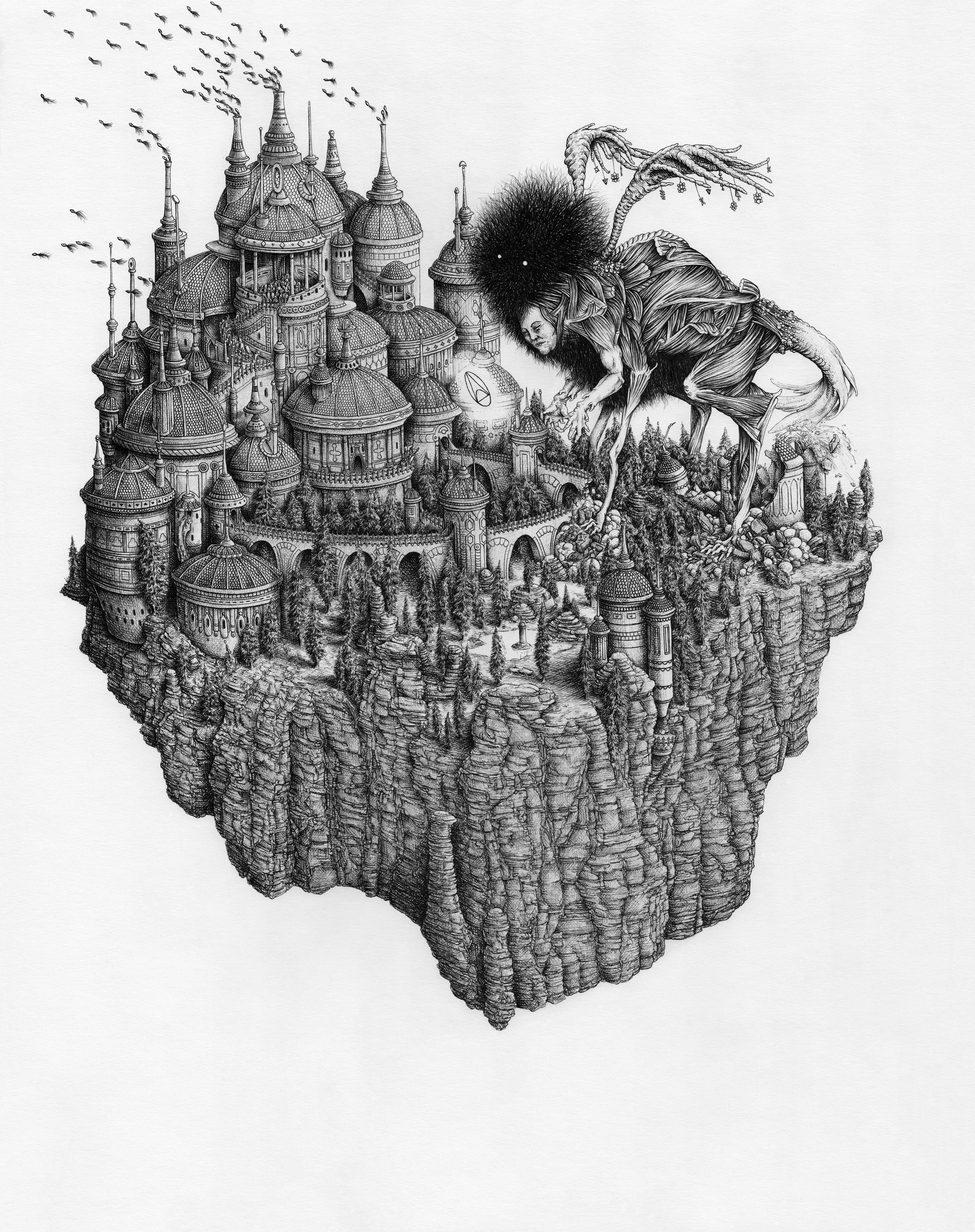 Floating Islands On Behance Art Drawings Art Sketches Ink Art